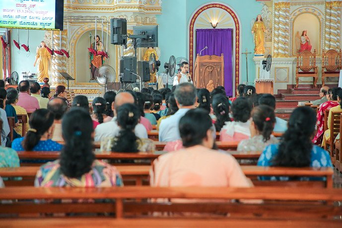 At 9.15 a.m., Parish Priest Rev. Dr. Roque D’Souza formally introduced Fr Wilson D’Souza, and Fr Rohan offered a bouquet as a mark of respect and welcomed the gathering of more than 225 participants, and briefly explained the need for such awareness programmes.